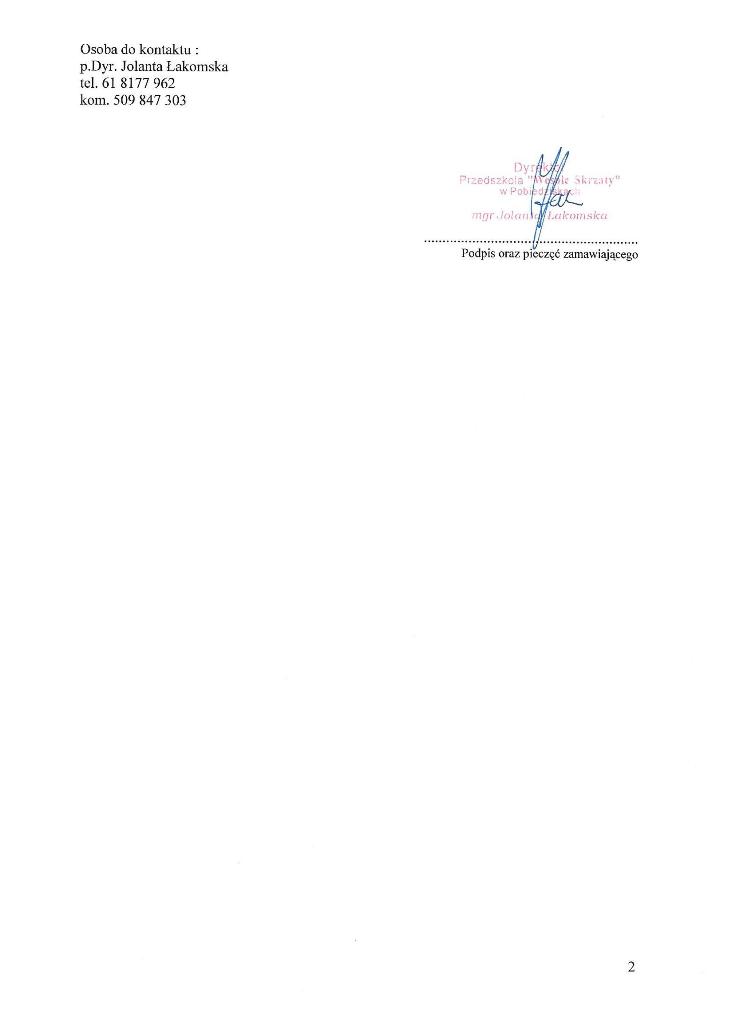W związku z zamiarem zakupu w trybie art. 4 ust. 8 ustawy z dnia 29 stycznia 2004 r.- Prawo zamówień publicznych (tekst jednolity Dz. U. z 2013 r. poz. 907, 984, 1047, 1473 oraz z 2014 r. poz. 423, 811, 915, 1146,1232 i z 2015r. poz. 349, 428, 605 z póź. zm.) Przedszkole „Wesołe Skrzaty” w Pobiedziskach prosi o złożenie oferty cenowej na niżej wymienione prace związane poniżej opisanymi pracami: